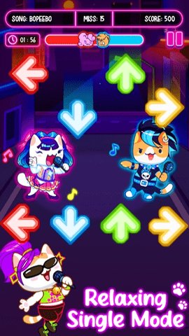 3、游戏中还设有二重唱模式,玩家可以控制两只可爱的猫明星,在不同的音乐流派中进行可爱的二重唱表演。