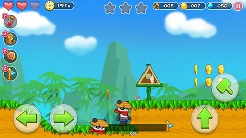 3、玩家需要按照不同的任务要求解锁关卡任务,沉浸式地扮演熊猫侠客,收集道具和金币,寻找失去的财富和心爱的公主。