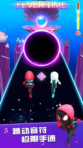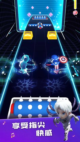 1、音乐的律动感和节奏感都十分强烈,玩家只需轻轻左右滑动指尖,跟随着音乐的节奏,使英雄触碰到色块上,完成整首歌的闯关。