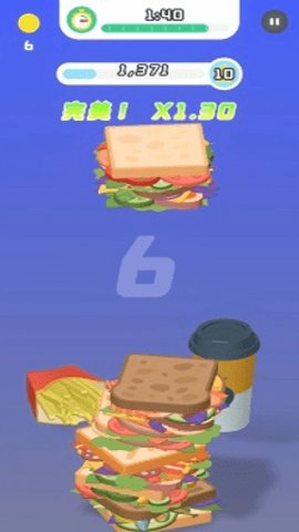 1、三明治叠叠乐是一款休闲闯关手游,想要吃到更多的三明治,就需要不断完成叠加,巧妙地堆叠,保持底部平稳,享受完美的味道。