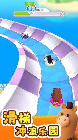 2、除了和其他可爱的动物一起比赛,玩家还需要面对各种挑战,准备好接受这个刺激的滑梯冲浪挑战了吗 游戏操作非常简单,玩家只需要通过拖动动物选手来控制滑梯冲浪的方向,躲避障碍物,赶超对手,最终到达终点。