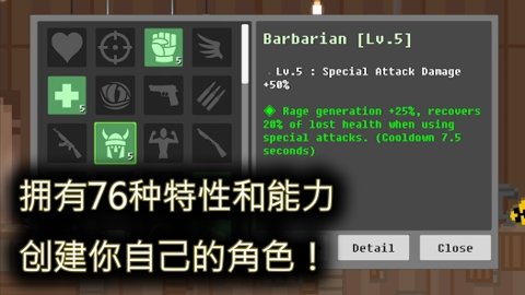 2、除了搜集物资、伐木采集资源建造末日基地,拯救同伴,消灭尸潮入侵外,玩家还需要在充满危险的变异怪物和敌人的荒地中战斗并生存!建立自己的物语,像素末日角色扮演游戏!要应对越来越多的怪物,就要让自己更强大。