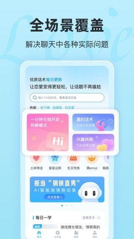 4、恋话宝是一款功能丰富、专业可靠的恋爱话术教学应用,为用户提供了全方位的恋爱支持和指导。