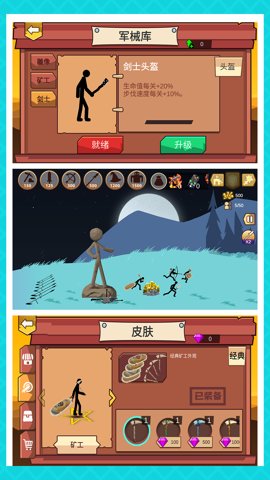 3、玩家还可以通过不断升级火柴人和装备,提升他们的能力和战斗力。