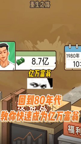 3、重生亿万富翁拥有高度自由的选择系统,玩家可以根据自己的喜好和策略决定自己的命运走向。