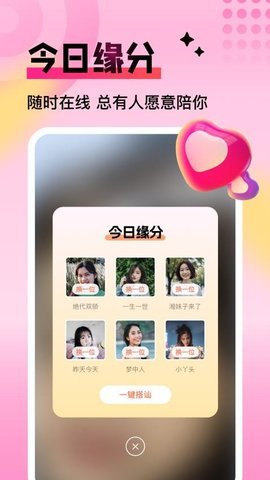 2、缘分速配和缘分筛选功能,根据用户喜好和需求,精准匹配潜在伴侣,提高交友效率。