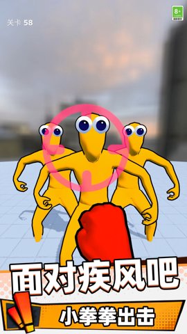 1、玩家将控制一个小人角色,通过在屏幕上滑动的方式来延长手臂并出拳,以击倒敌人。