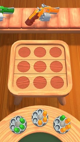 2、将五颜六色的子弹装入相同颜色的手枪内,面对一个个全新的挑战回合关卡,体验简单有趣的内容。