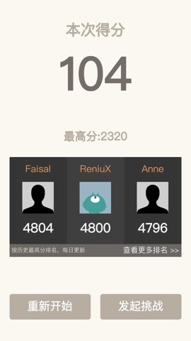 2、分数越高,排名就会越靠前,可以在好友们的排行榜上展现自己的实力。