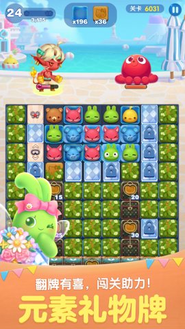2、玩家只需轻划手指,将三个相同的小动物旗子连成一行或一列,即可完成一次消除。