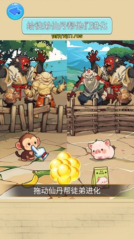 西游笑哈哈是一款备受欢迎的益智游戏,以西游记为背景,让玩家在游戏中扮演孙悟空、猪八戒等经典角色,保护唐僧师徒免受妖怪的侵害。 玩家需要利用各种资源来进化角色,提升他们的能力,以便应对不断增强的妖怪大军。通过不断进化,唐僧徒弟们可以变得更加强大,最终打败所有的妖怪,完成任务。