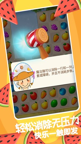 2、果缤纷乐园是一款非常适合休闲放松的游戏,玩家可以在闲暇时刻打开游戏,享受消除水果带来的乐趣和挑战。
