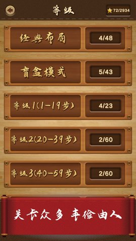 1、三国华容道拥有500多个关卡,难度从1级到7级不等,步数从几十步到上百步不等,涵盖了各种类型的挑战。