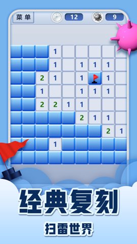 3、扫雷世界是一款充满挑战和乐趣的休闲益智游戏,玩家可以在其中体验到数字分类、插旗、缩放等多种功能的使用。