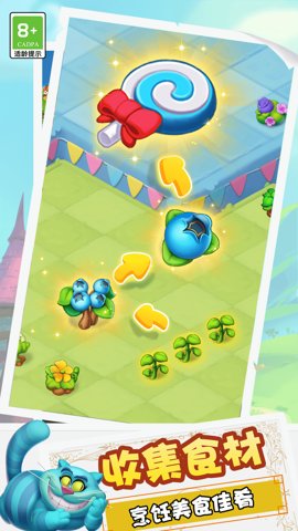 4、合成相同的物品可以升级,解除糖果仙境受到的诅咒,开辟新的土地,结识新的伙伴,一起探索未知的世界。