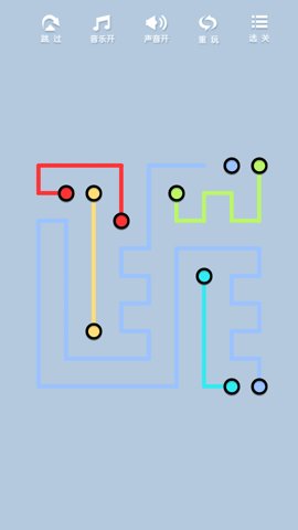 1、玩家需要找到颜色相同的圆点进行连接,确保点和线连接的同时将所有的空格填满,而且线条之间不能交叉,才能算是成功通关。