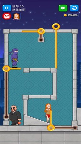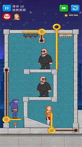 3、益智间谍拉动别针是一款有趣的逃脱小游戏,玩家将扮演一位忍者,通过拉动别针解救爱人,需要灵活运用智慧和策略解开各种谜题和陷阱。