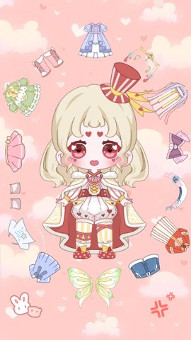 1、通过精心搭配发型、衣服、配饰等多种类别,玩家可以打扮出一个漂亮可爱的卡通美少女形象。