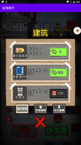 猛鬼躺平是一款经营游戏,玩家可以在游戏中体验到各种不同的道具种类,每个道具都具有独特的攻击技能。这些道具可以帮助玩家有效地对抗来袭的敌人,提高炮塔的攻击能力。玩家需要合理地运用这些道具,才能成功抵御敌人的进攻。