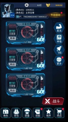 3、身为天道主宰,玩家可以掌握不同的法则之力,参与游戏内活动,获得丰厚奖励,加速成长。