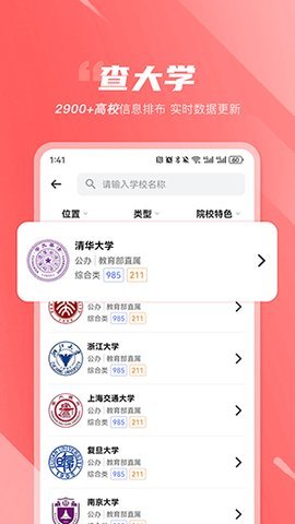 1、APP还提供学校和专业的详尽信息,包括历史数据、师资力量、就业情况等,让考生可以全面了解目标院校和专业的情况。