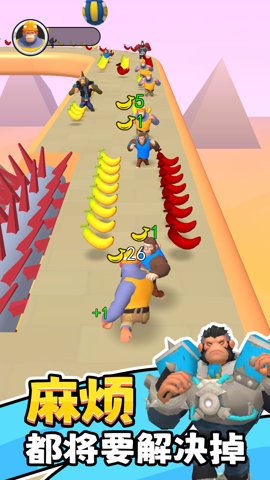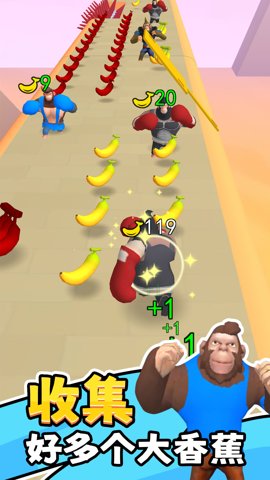 2、玩家不仅需要在快节奏的跑酷过程中保持平衡和速度,还需要与其他猩猩展开激烈的乱斗,争夺资源和地盘。