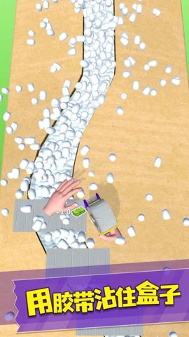 1、玩家需要控制胶带将所有盒子打包,并自由前进,使用胶带吞下各种障碍并更快地通过游戏中的关卡。