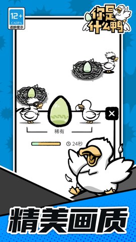 1、作为一款简笔画风格的放置休闲游戏,你是鸭融入了养成、收集等元素,让玩家可以体验到培养和进化的乐趣。
