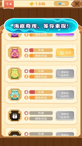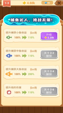 1、除了捕捉鱼类,游戏中还设置了各种关卡和挑战,玩家需要在规定的内完成任务,获得高分。