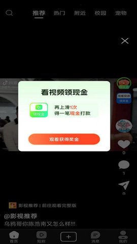 2、用户可以通过系统智能推荐来发现符合自己喜好的短视频,每天完成观看任务还能领取超值红包,提供满足的用户体验。