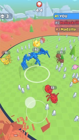 人类怪物竞技场是一款非常刺激的手游,玩家需要在一个由人类制成的怪物竞技场中生存,并尝试成为其中最强大的怪物。整个游戏以非常可爱的卡通风格设计,配色风格也非常完美,让你可以随时体验。游戏操作简单,非常适合在坐车或等车的时候玩耍。同时玩家还需要面对四面八方围攻而来的敌人,在周围筑起防御墙,以保护自己的家园。