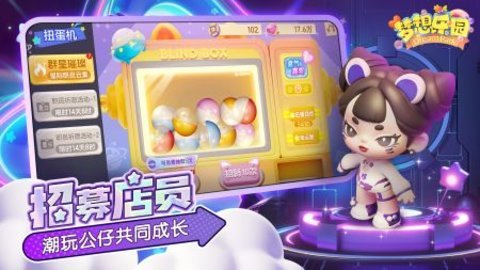 3、玩家可以自由装饰乐园,收集潮玩盲盒,培养可爱的店员,参与各种活动,甚至与其他玩家互动分享乐趣。