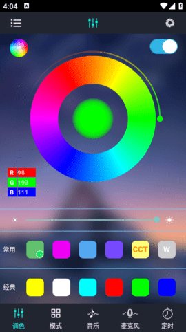 2、该应用具有颜色控制、色温控制、色彩控制、音乐控制和麦克控制等功能,让音乐与灯光完美结合,形成多彩的灯光效果。