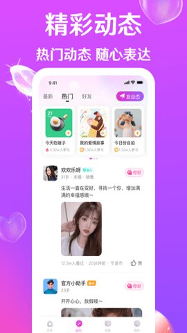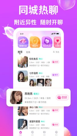 3、用户还可以加入同城相亲交友,与24小时在线的同城异性互动,享受亲密的交流体验。