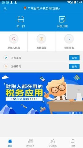 广东国税是一款中国税务应用,主动信息推送。广东省税务局网站以“政务公开的第一平台、税收宣传的第一传媒、办税服务的第一窗口、税务管理的第一阵地”为定位,以“服务性、宣传性、行业性、实用性”为办网原则,紧紧围绕税收中心工作,不断增强网站功能,丰富网站内容,改进服务方式。广大用户可以在广东国税网站方便快捷地了解税收资讯,查询税收法规,接受纳税服务,办理涉税业务,进行互动交流,实行监督。