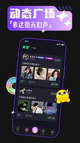 3、啾咪语音的派对和动态广场内容实时更新,确保用户随时都能找到新鲜有趣的内容。