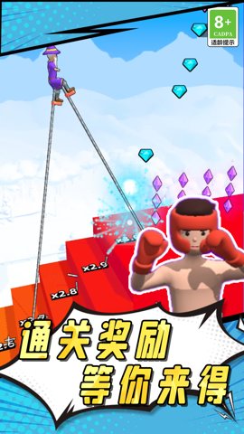 1、在搭桥竞赛中,玩家不仅需要克服各种难题,还要利用高跷向上攀登,体验跑酷的刺激感。