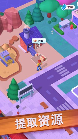 1、玩家将扮演一个白手起家的商人角色,通过休闲砍树和建造建筑,以极快的速度建设整个小镇。