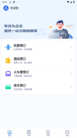 1、用户可以在应用中进行机票预订、酒店预订、火车票预订、用车预订等操作,实现高效化智能管控。