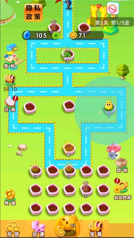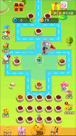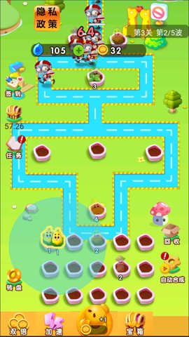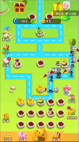 2、玩家还可以通过合并植物来创造出更加强大的植物,提升整体的防守实力。
