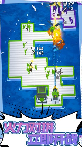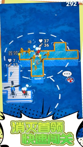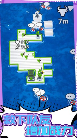 2、玩家需要将小筏合并成大筏,让竹筏上的角色不断升级,成为海上的霸主。