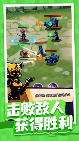 1、游戏世界充满未知的挑战和强大的敌人,只有通过不断提升自己的火柴人团队,才能在战斗中取得胜利。