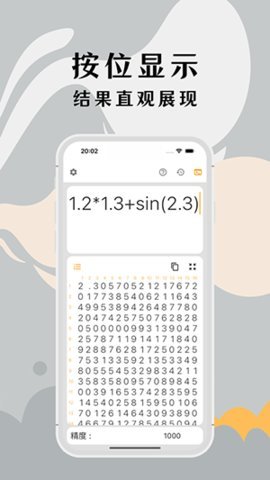 4、高精度计算器APP支持最高10万位的计算精度,满足各种高精度计算需求。