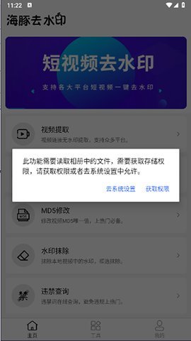 3、除了去水印功能外,海豚去水印还提供了视频提取、图集提取、MD5修改等多种实用功能。