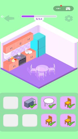 2、通过不断解锁新的家具和场景,玩家可以享受到无穷无尽的乐趣和挑战。