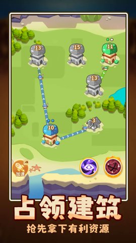 1、玩家需要在游戏中思考最有效地派遣自己的战士,攻占敌方的城堡。