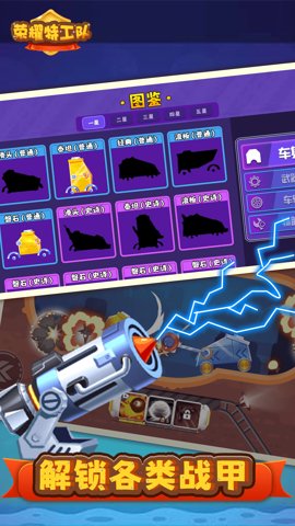 荣耀特工队是一款休闲益智游戏,玩家将驾驶各种酷炫的战车参与激动人心的战斗。玩家需要驾驶战车参与战斗,使用各种武器击败敌人,并完成各种任务和目标。这款游戏采用了卡通风格的设计,给人一种轻松愉快的游戏体验。