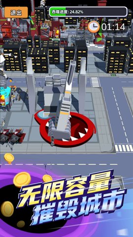 3、游戏地图中充满了各种可以被吞噬的物体,玩家需要通过手指的滑动来控制黑洞的移动,快速吞噬周围的物体。