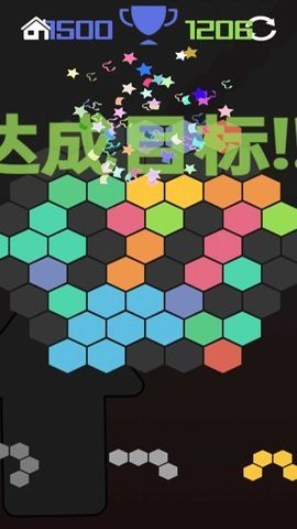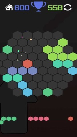 1、这款游戏结合了传统拼接和创新消除玩法,采用了六边形的方块拼接模式,在规定的面板网格中实现方块拼接和消除。
