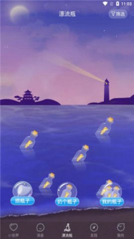 2、用户可以将自己想说的话写在漂流瓶里,让它自由地漂流,穿越大海,等待有缘人捞起来。